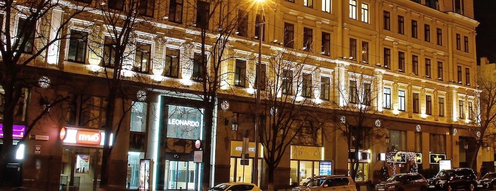 Leonardo is the modern A-class business center located in the very center of the business life of Kiev at the intersection of Vladimirskaya and Bohdana Khmelnitskoho streets. The complex contains two units being 7- and 17-floor buildings and fitted with a 7-floor underground parking lot. The Leonardo Business Centre has a modern architectural concept. The basic façade part is almost entirely glazed, keeping up with the modern trends of the business center design concept. The state-of-art engineering technologies have been used while constructing the complex. The modern security and fire systems were installed. The efficient and functional floor layout, increased comfort of rooms, and developed infrastructure are the extra advantages of the Leonardo Business Centre.
